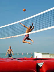 It's not just the sport that will get you moving. Bossaball is often played to Latin American music and is sometimes accompanied by special samba referees. They referee the game and take it to a higher level using a whistle, a microphone, percussion instruments and DJ decks. Bossaball fits perfectly between other beach sports but it can be played anywhere, even indoors.