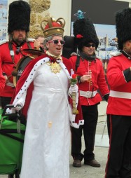 Then we noticed the Queen accompanied by some beefeaters, which turned out to be a chirigota - a singing group which performs topical songs based around current news events and personalities who've been involved in controversial situations. La Reina Isabel II and her splendidly-attired guards (one even had a pigeon on his shoulder) sang about "emigrating to Gibraltar" to get a job. Take a look...