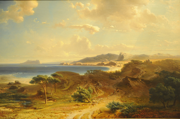 Naturally, living in Estepona, Bamberger’s Playa de Estepona caught my eye. The typical traits of Romantic painters are evident in this painting, with the view of the beach depicting the “grandeur of nature” alongside less significant details, for example, the Rock of Gibraltar in the background and the people in the foreground.