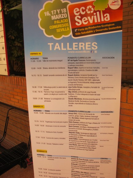 Last weekend was the second edition of Ecosevilla, following the launch event last October. There were more stands - 100, up from 70 - and the hall at FIBES Conference Centre looked and felt busier and fuller. There were stalls with organic food, drink, sustainable energy, handmade toys, environmental organisations, charities and transport. Like last time, they had an impressive programme of workships and activities, including brick-making and flamenco for children, as well as a climbing wall, while adults could partake of Chi-King, Gestalt and vibration therapy, among others.