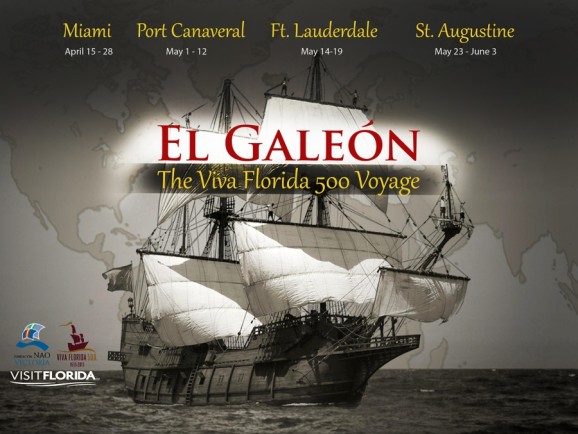 Launched in 2010, El Galeon has sailed all around the world, spreading the word about Andalucia's rich history, covering more than 35,000km and receiving over 600,000 visitors in 50 ports. Its previous part of call on the Viva Florida 500 tour was Miami, Florida, when it stayed for three weeks (the ship left Tenerife, and sailed via Puerto Rico and Dominican Republic). After Cape Canaveral, El Galeon will sail to Fort Lauderdale (14-19 May) and finally St Augustine (23 May-2 June).