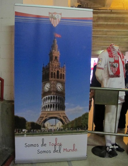 So what was the British connection, I hear you ask? Well, for every home match this season, Sevilla FC is inviting one nation as special guests, as part of their "Somos de Todos, Somos del Mundo" promotion. The idea is "to integrate different nationalities that live in our nation, with football being the motor of integration". You get tickets for 5 euros (with proof of nationality), a free scarf, and entry into a competition to win a signed shirt. So far nationals of Uruguay, the US, and Ireland have enjoyed this promotion.