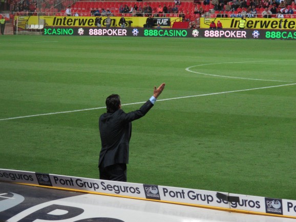 with my press pass, I was able to move freely around the stands, watching much of the match right next to the pitch, wherever a free seat was available. I did feel a bit guilty, as I didn't appreciate the experience as much as a true football aficionado, but I certainly valued being able to see the action up close and absorb the excitement, hear the chants and watch as the manager, standing a few metres away, went apoplectic about his team's poor performance.
