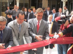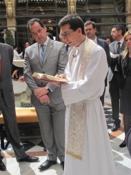 The Mayor of Seville, Juan Ignacio Zoido (left of photo), was at the official reopening ceremony on Tuesday, cutting the ribbon along with the regional president of the Starwood Group, which owns the Alfonso XIII. The priest said some prayers and blessed the hotel with holy water. Perhaps he was their insurance policy against possible Tuesday 13th mishaps; in any case, spring sunshine bathed the occasion, and the whole thing went off without a hitch.