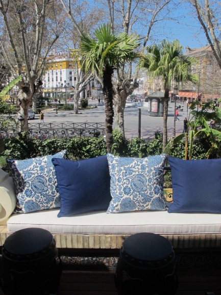 Only one bar, the Bodega Alfonso (formerly Bar Alfonso) is finished - the American Bar, an Art Deco feature which takes the hotel back to its original incarnation, is yet to be opened. But the Bodega Alfonso's outdoor terrace is an inviting space, with wicker sofas and chairs filled with cushions, and a curtained area too. Nods to fashion, but without being too modern. And perfect for warm spring evenings.