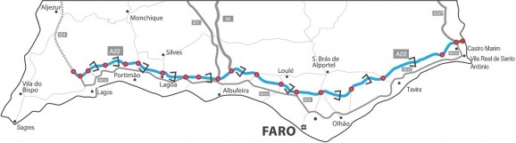 You can see exactly where all the cameras are, along this road which stretches from Villa Real de San Antonio, the first town you come to in Portugal after leaving Spain, on the banks of the river which forms the border between Andalucia and the Algarve, right along the coast to Lagos.