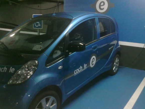 I saw an electric car sharing point in a car park in Seville last week - it wasn't the first time I'd seen it, but this time I took more interest - I shot some snaps (camera phone, dark, hence the poor quality) and chatted to the attendant. These Cochele cars are used for "car sharing", where you pay a monthly fee, and hourly rate, and extra for km (see my other post for more details).
