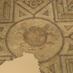 There are various houses, of which you can see central patios with columns, and walls, including some rooms such as the triclinium (dining room). Almost all the houses have part of their floor made of mosaics, in intricate, colourful geometric designs with knots, squares and crosses; look out for the goblet in Casa de Baco (V on my plan; a party house, for sure, Bacchus being the God of Wine), and the wreath in Casa de la Columna (VII on my plan, near the back of the museum).