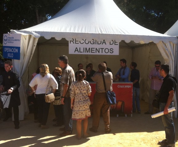 They say charity begins at home - well now donations are being accepted for those in Spain, from those in Spain (I don't want to say Spanish, because this affects plenty of non-Spanish too). The Red Cross has just launched a national fundraising campaign, there's a food bank here in Seville, and I've seen food collection points this weekend in two unlikely places: on Saturday at a band competition, with its high-pitched, mournful yet shrieky Semana Santa music, in a park in Los Remedios; and at our local romeria, the Romeria de Torrijos (est attendance: 30,000 - it's quite a big one) yesterday. Instead of bringing bouquets of flowers for the Virgin in her chapel at the Hacienda de Torrijos, the faithful were invited to leave bags of food, to be distributed among the most needy families in the village.