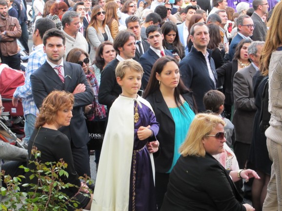 This being Spain, small children are rarely told to hush, and they run about with their siblings and friends on the frequent pauses in the procession - unless, of course, they are wearing the hood and walking with the nazarenos. Some join in from a young age, although not for the entire route; an hour or so, with their parents walking alongside.