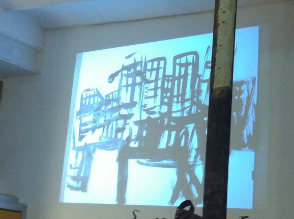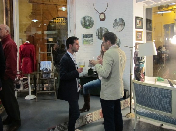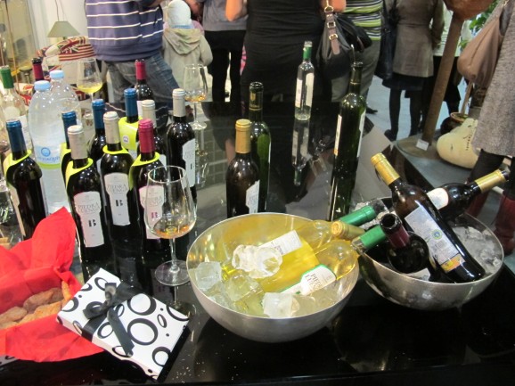 Our next stop was a few minutes' walk to the other side of the Setas, or Metropol Parasol. Wabi Sabi is a shop/gallery, which has vintage and contemporary clothes, excellent modern art, furniture, books and many other delights. As their contribution to Noche en Blanco, they had live painting on the theme of "Caminos, Ciudades" (Paths, Cities), accompanied by poetry. There was also free wine - I tasted the white, and it was excellent.