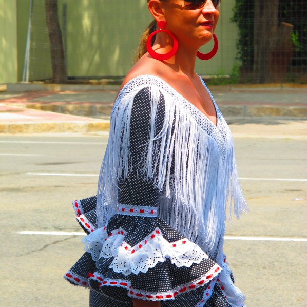 Here are some photos of the Feria yesterday (Wednesday) - note the fashion for the new mini-shawls, with a fringe over the neckline of your dress, either decolletage or back. I saw a few matching bolero jackets too (as worn by Kate Middleton over her dress at her evening wedding party). I love the crazy colours, the mini-feriantes, the horses...