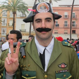 Then we noticed the Queen accompanied by some beefeaters, which turned out to be a chirigota - a singing group which performs topical songs based around current news events and personalities who've been involved in controversial situations. La Reina Isabel II and her splendidly-attired guards (one even had a pigeon on his shoulder) sang about "emigrating to Gibraltar" to get a job. Take a look...