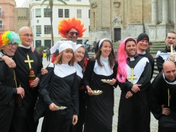 My daughter and I dressed up as hippies, using our own clothes plus some face paints, but my son and husband preferred to dress normally. On our wandering around the old part of the city, where Carnaval takes place, we saw insects, members of the clergy and Guardia Givil - all fancy dress costumes, of course.