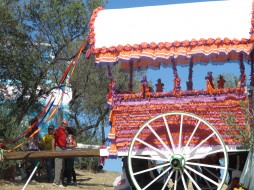 When we reached the area of the romeria (not the very top, thankfully), people were gathered around their gypsy wagons, while the oxen rested after pulling their loads up the steep hill. The trilling sound of a flute filled the air, along with drums and guitar. A rustic sight, although Seville is just a few kms away.