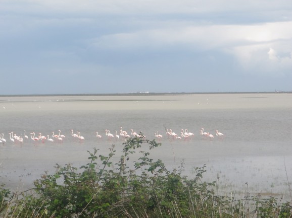 A spectacular site, 40,000 flamingos live on the marismas. They feed here during the day, and then return to their nests in Fuente de Piedra lake, near Antequera, at night.