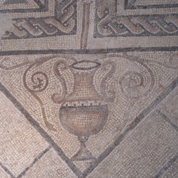 There are various houses, of which you can see central patios with columns, and walls, including some rooms such as the triclinium (dining room). Almost all the houses have part of their floor made of mosaics, in intricate, colourful geometric designs with knots, squares and crosses; look out for the goblet in Casa de Baco (V on my plan; a party house, for sure, Bacchus being the God of Wine), and the wreath in Casa de la Columna (VII on my plan, near the back of the museum).