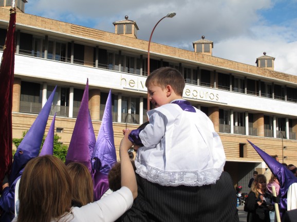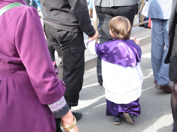 This being Spain, small children are rarely told to hush, and they run about with their siblings and friends on the frequent pauses in the procession - unless, of course, they are wearing the hood and walking with the nazarenos. Some join in from a young age, although not for the entire route; an hour or so, with their parents walking alongside.