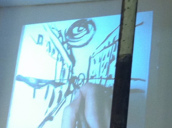 Our next stop was a few minutes' walk to the other side of the Setas, or Metropol Parasol. Wabi Sabi is a shop/gallery, which has vintage and contemporary clothes, excellent modern art, furniture, books and many other delights. As their contribution to Noche en Blanco, they had live painting on the theme of "Caminos, Ciudades" (Paths, Cities), accompanied by poetry. There was also free wine - I tasted the white, and it was excellent.