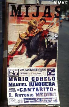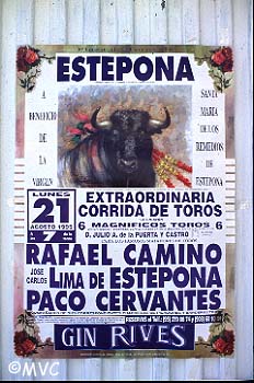Bullfight posters can be collectors items. Their style hasn't changed for years. If you take the trouble to read them carefully they explain in detail all about the fight in question. Have a look at some. Book your stay in Andalucia Now! Back to top
