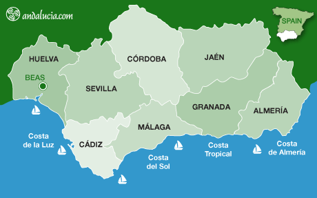 Beas is located 25km from Huelva. To get there, take the H-31 leaving Huelva and take Exit 75, towards Trigueros on the N-435. Pass by Trigueros and you will then reach Beas.