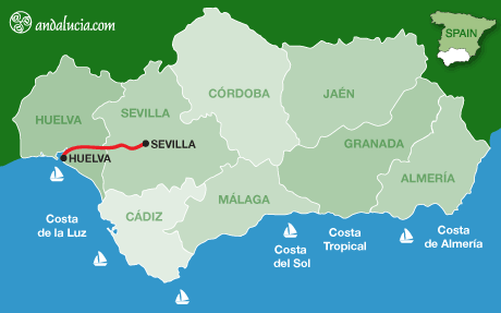 From Sevilla to Huelva the traveller can either take the A-49 motorway or the slower A-472 highway.