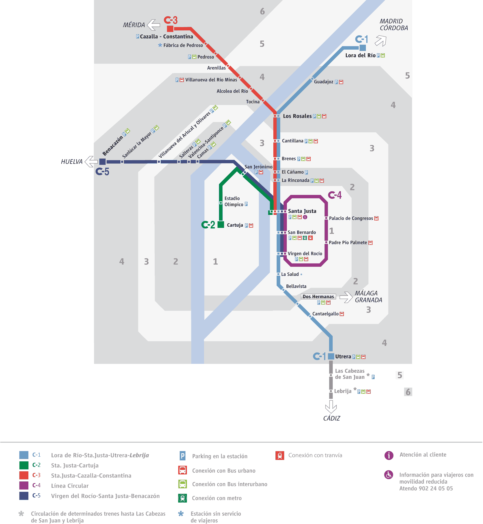 | Cercanias routes in Andalucia; Seville, Cadiz and Malaga |